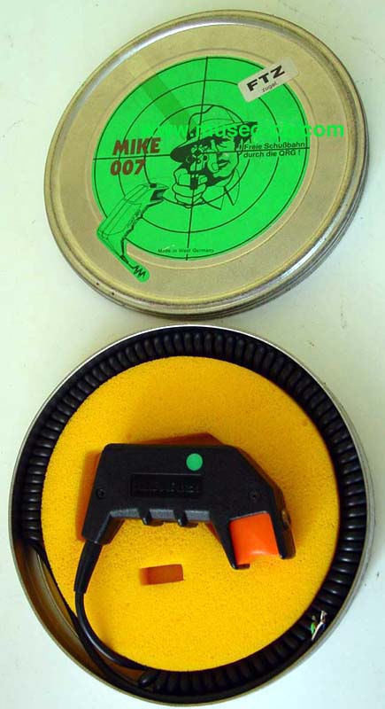 Curiosísimo micrófono dinámico por su forma. Le llamaban “pistola”, por la forma de cogerlo y pulsar, con un gatillo. Una rareza.