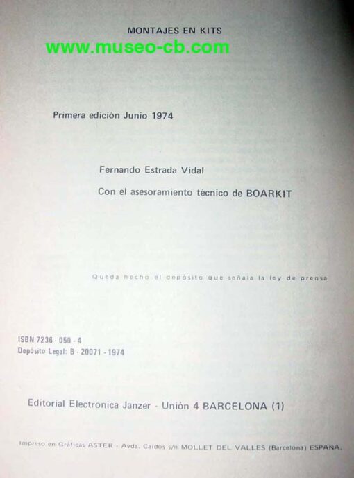 Libro en Español de 1974, editado por electrónica Janzer, de Barcelona. Escrito por Fernando Estrada Vidal, con el asesoramiento técnico de Boardkit.