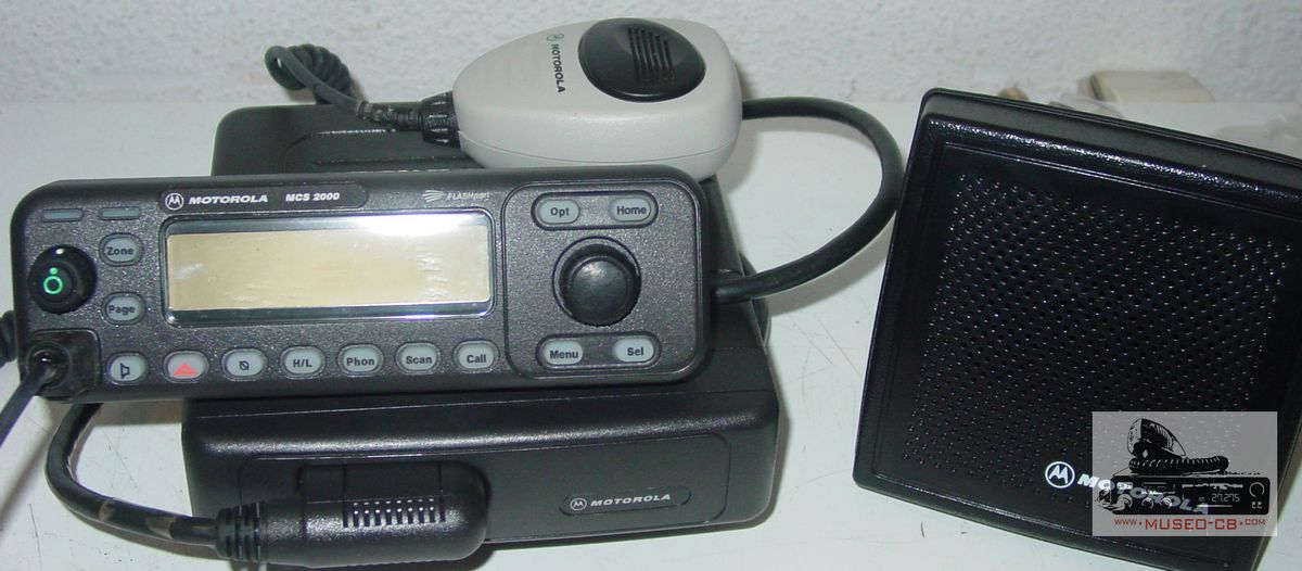 Equipo movil profesional muy robusto, con altavoz externo y frontal separado. Hay versiones de VHF, UHF y 800-900 mhz