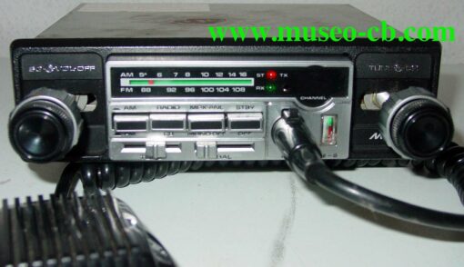 Emisora de CB 40 canales integrada en una radio de coche. No tiene casette