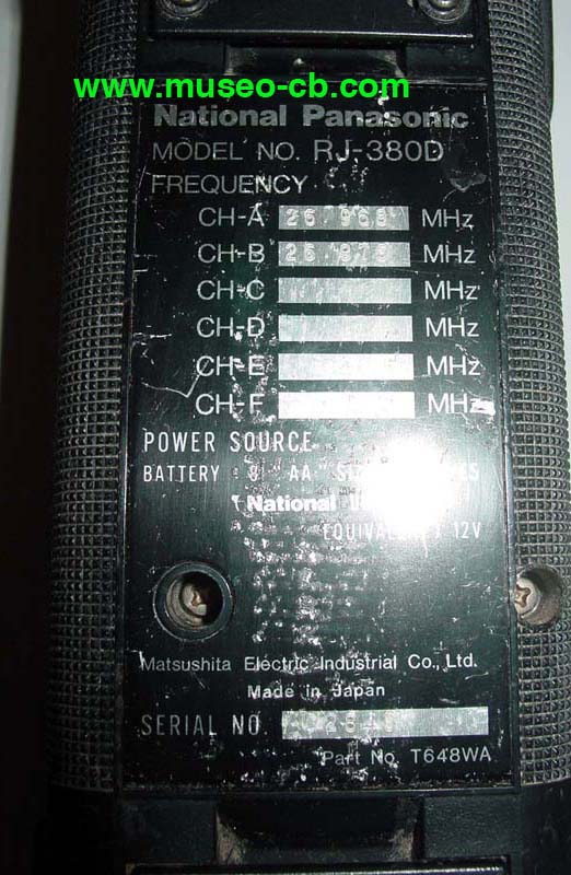 Aparatoso walki, en la línea de National Panasonic. De fábrica trae los canales 26.968MHz y 26.976MHz. Poca potencia y muchas prestaciones. Resistente a la lluvia.