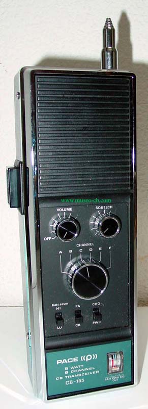 Dispone de Squelch, toma y medidor de carga de la batería, así como selector de potencia, de PA/CB, o carga alimentación exterior. Permite la conexión exterior de antena, altavoz, carga de baterías y micrófono.