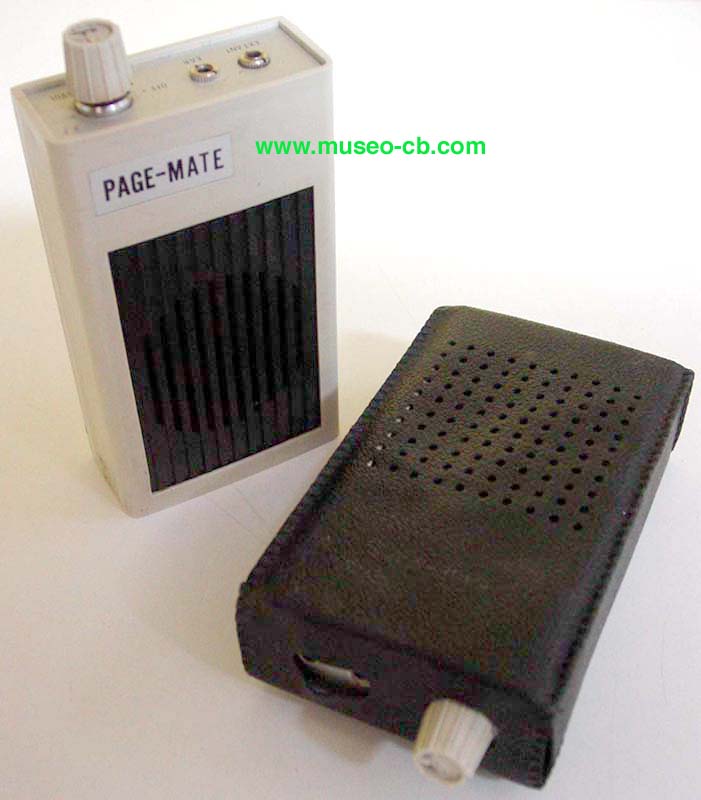 Pareja de buscapersonas en CB. En realidad es un simple receptor de un canal controlado con cristal de cuarzo. Dispone de botón encendido y volumen, y tomas paar antena y altavoz exterior. Tienen funda de cuero y funcionan perfectamente.