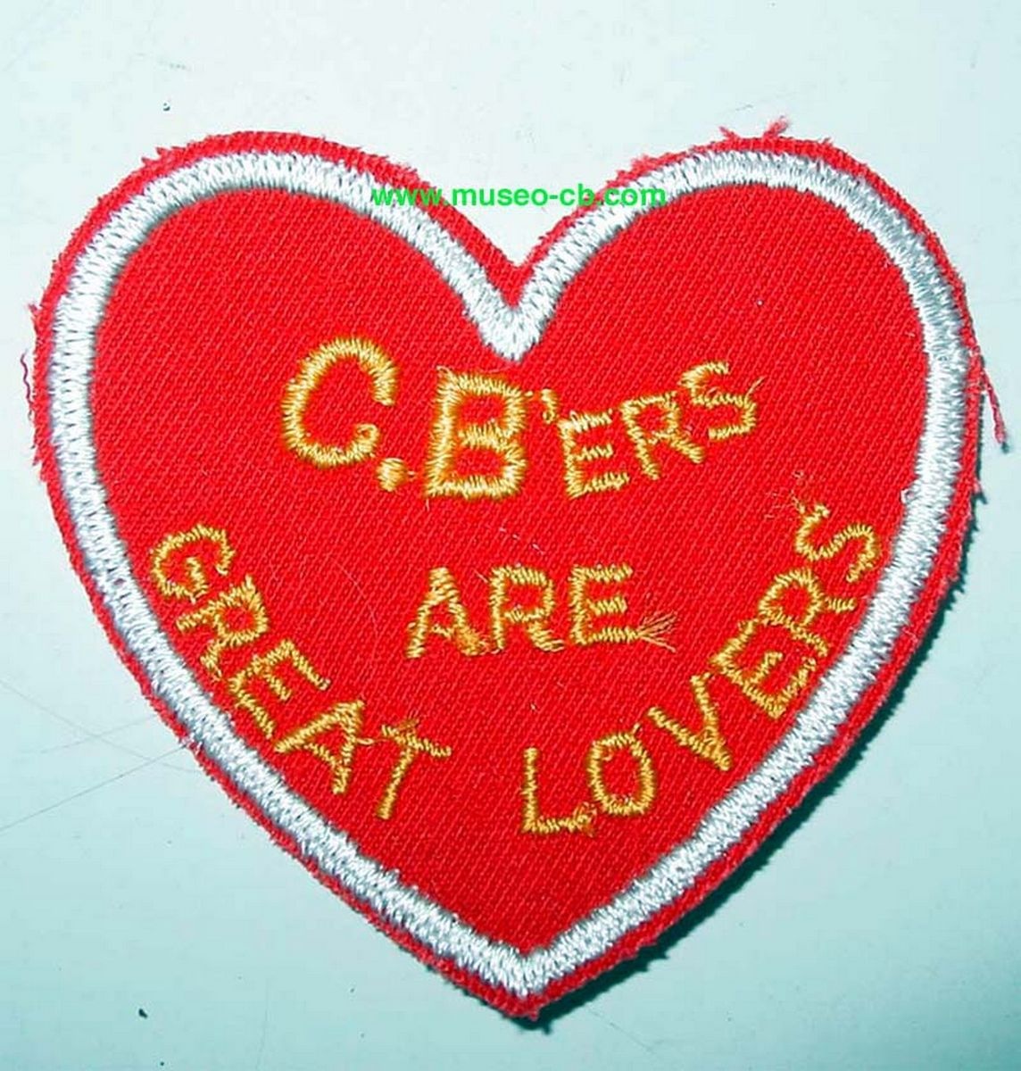 Parche en forma de corazón con el lema "los cebeistas somos grandes amantes". (Una gran verdad)