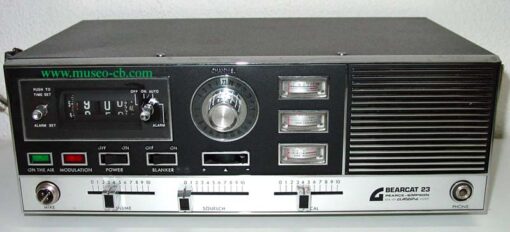 Estación base con reloj despertador. Dispone de tres medidores para RF, potencia y modulación.