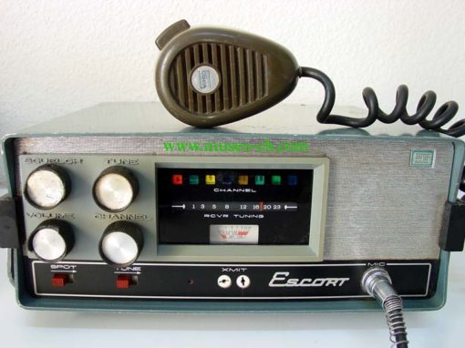 Preciosa emisora a válvulas, con VFO en recepción s-meter. Dispone de un zócalo de canal de transmisión en el frontal, para que sea más fácil cambiar el canal, sin tener que abrir el equipo