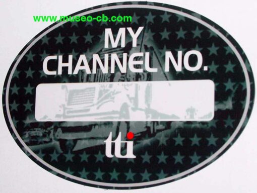 Pegatina de la marca TTI, con espacio para indicar el canal de trabajo habitual.