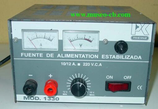 Fuente de Alimentación Pihernz, de 12 amperios de pico. Cuenta con voltímetro y amperímetro.