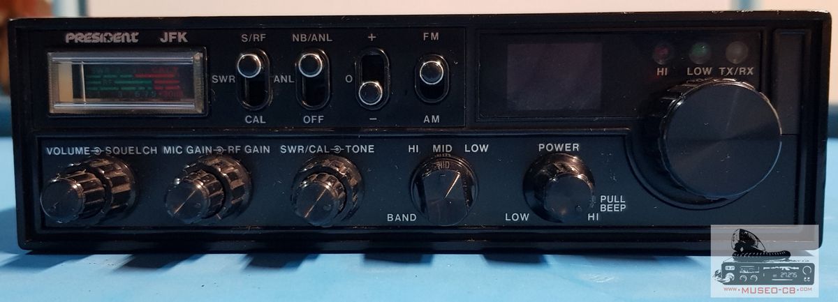 Robusta y elegante emisora de 120 canes con AM y FM. Incluía Roger Beep, ANL, desplazador, tono, regulador de potencia, y, por supuesto, squelch automático ASC