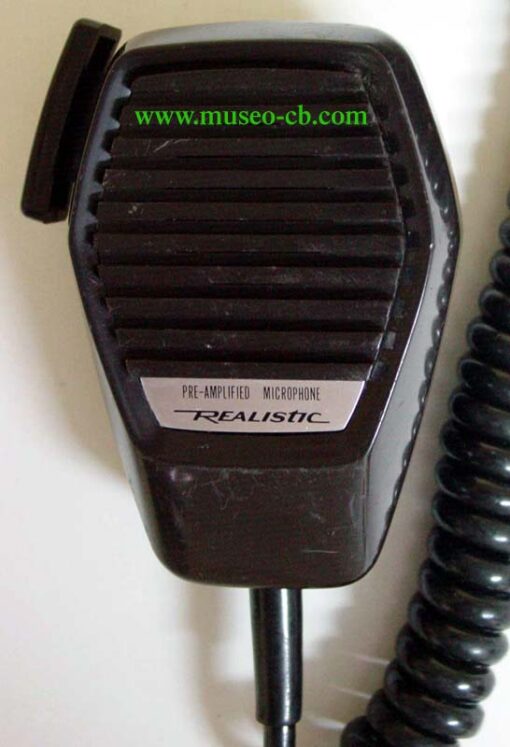 Micrófono preamplificado de mano. En la parte trasera lleva el control de ganancia y el habitáculo para una pequeña pila de 7 voltios.