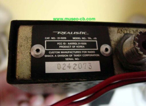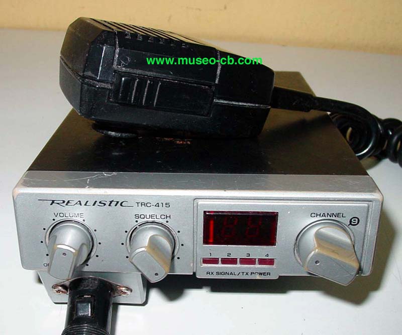 Emisora de pequeño formato, con S meter a diodos leds. En el conmutador de canales se indica la posición del canal 9 (emergencia). La clavija del micro sobresale en la parte inferior del equipo.