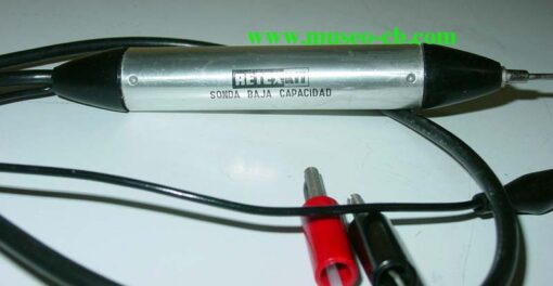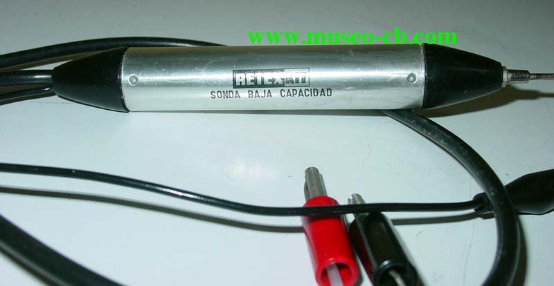 Sonda baja Capacidad Retexkit OS-3 Para utilizar con el osciloscopio RetexKit OS-1E. En el catálogo general 11, de 1971, tenía un precio de 506 pesetas el kit y 633 pesetas ya montado.