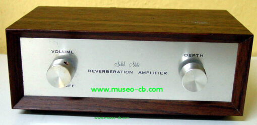 Amplificador de micrófono y cámara de eco o reverberación de estado sólido. En la parte posterior tiene las clavijas para enchufar el micrófono y la conexión a la emisora.