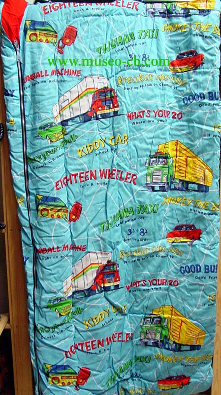 Saco de dormir o edredón para una persona decorado con motivos de CB. Dispone de una cremallera.