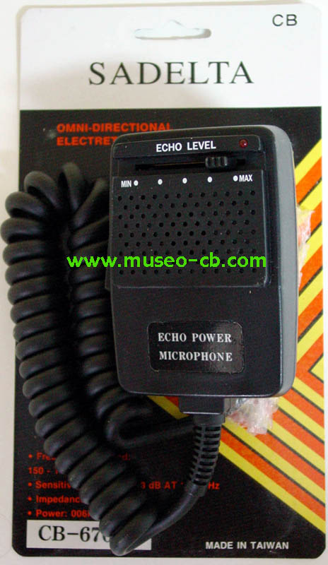 Falsificación de un Micrófono preamplificado con eco Sadelta. Se ha falsificado la marca, ya que Sadelta no construyó nunca un micro con esa apariencia. Existen en el mercado otros idénticos con las principales marcas de CB (Galaxy, President, etc).