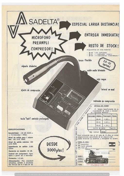 Micro Preamplificado adquirido en Delta Radio de Algeciras por ARL 100. Se le incorporó un generador de tono con un pulsador para cargar a máxima potencia el lineal en USB y LSB.