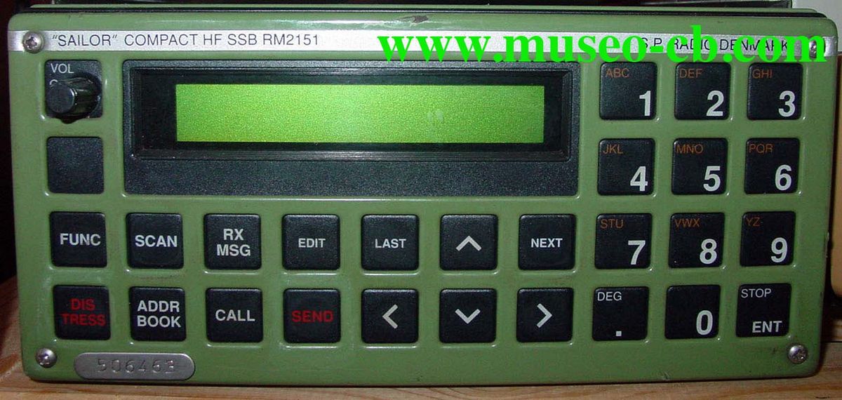 El RM2151 Sailor es un receptor de exploración con télex y DSC módem (Llamada Selectiva Digital) incorporado. diseñada para satisfacer las necesidades presentes y futuras para el servicio mundial de socorro y Seguridad Marítimos (SMSSM). Pantalla brillante y fácil de leer, fácil manejo y la instalación, nylon recubierto con gabinete metálico, iluminación nocturna, un acceso rápido a todas las funciones esenciales, pulsadores, con la sensación de solidez atractivo. La compañía "Radio SP" se fundó por Simon Petersen (SP) en 1930. La compañía tiene su sede en Aalborg, Dinamarca. En 1948, se convirtió a "PM Radio A / S". La compañía no sólo fabricaba receptores y transceptores marinos bajo la marca Sailor, sino también la televisión y receptores de radio para uso doméstico. En 1965, ese une a Bang & Olufsen. Sailor está considerada como la mejor marca de equipos marinos del mundo.
