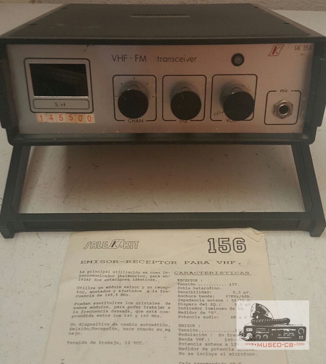 Emisora de VHF autoconstruída por Antonio EA7SL, Dispone de un canal para 145500, aunque se pueden incorporar otros canales a cristales de cuarzo, ya que tien un conmutador de 5 canales.
