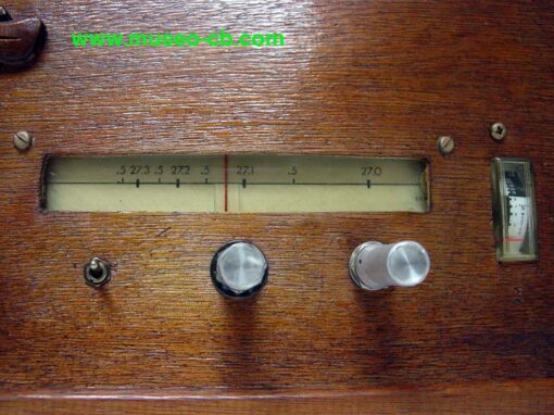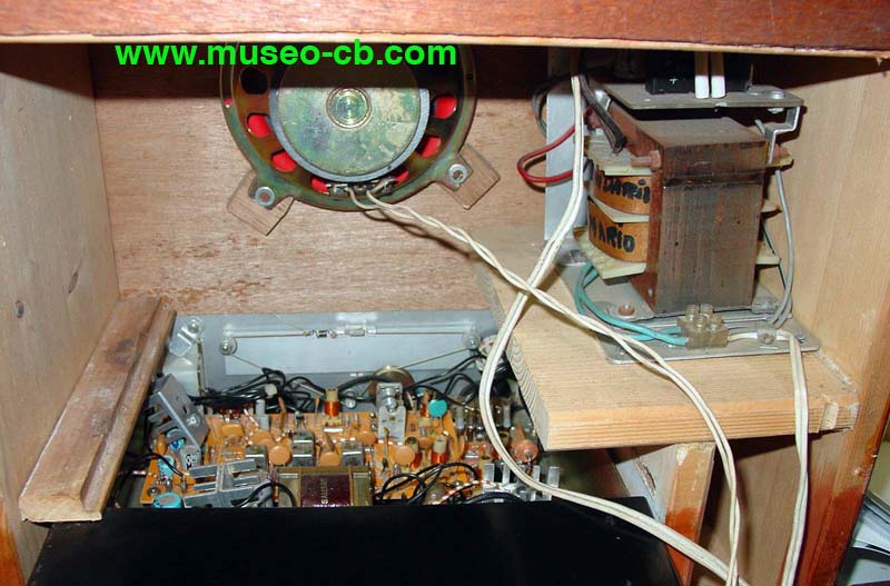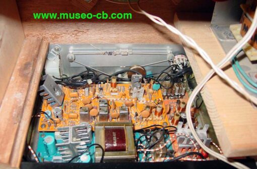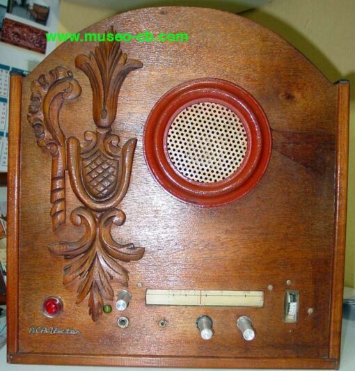 Por eso, quizás, el propietario metió el transmisor en el interior de una radio de madera tipo capilla, de la marca RCA Victor, quizás para camuflar que era una emisora. Incorpora altavoz en el frontal y fuente de alimentación, aunque tanto el VFO como el S-meter están en la caja propia del equipo y se ven en el frontal cortándole la madera.