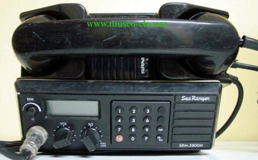 Equipo de banda marina. Como micro incorpora un telefonillo. Tiene el frontal inclinado hacia a bajo, pensado para llevar en la parte superior del puente.