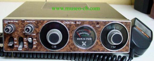 Curiosa emisora móvil que incorpora un receptor FM comercial de 88 a 108 Mhz. Tiene medidor de swr, y controles de fine tune y tone