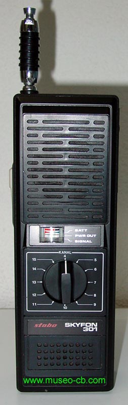 Walky muy robusto con los 12 canales AM que permitía la legislación alemana. La antena lleva incorporada una bobina de carga para acortar su longitud.