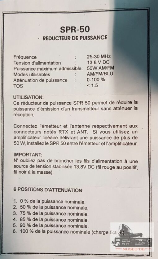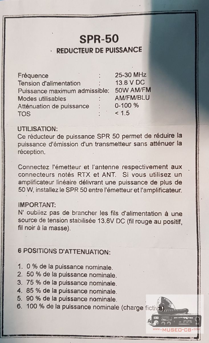 Este reductor de potencia SPR 50 permite reducir la potencia de transmisión de un transmisor sin atenuar la recepción.