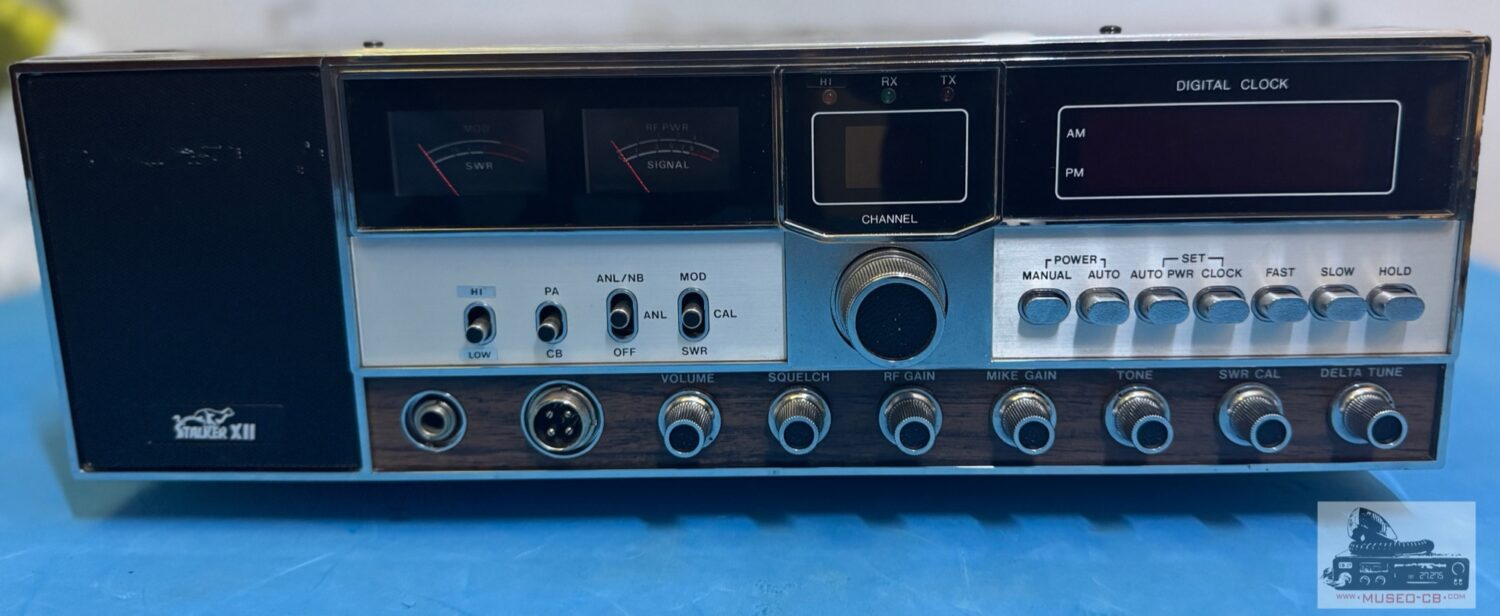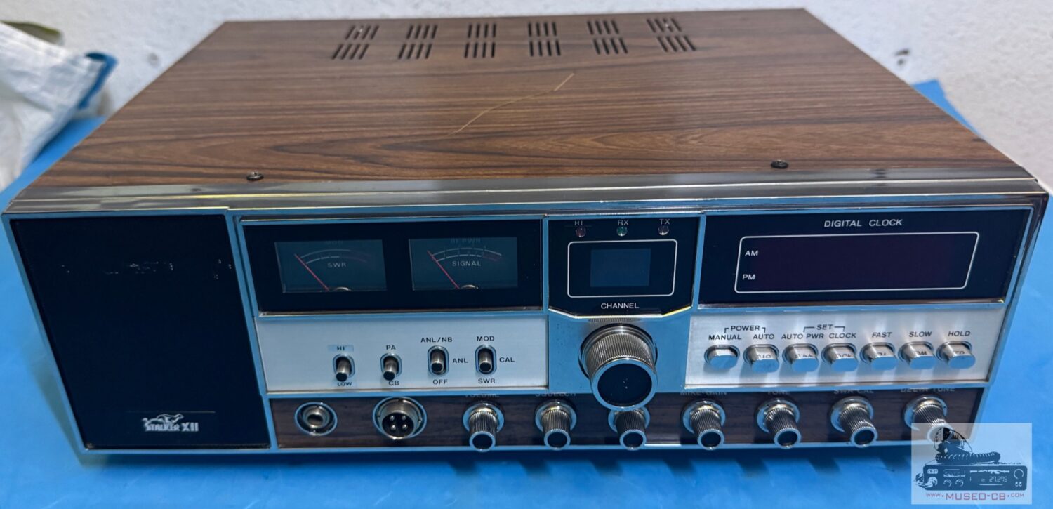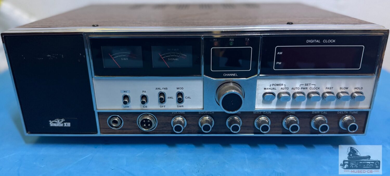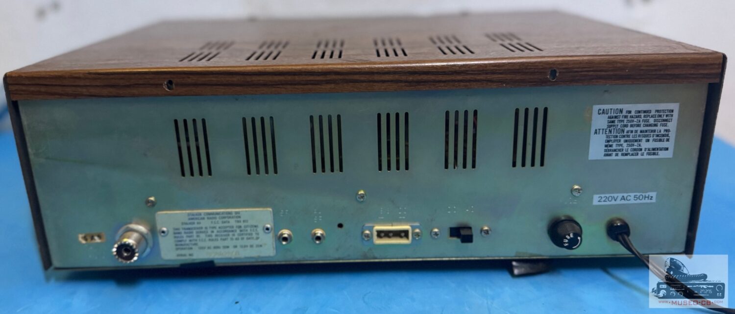 Emisora de 40 canales AM construída por American Radio Corporation en 1978, con reloj, despertador, PA, ANL/NB. Interruptor Canal 9. Delta tune (±1.5 KHz). Medidor SWR .