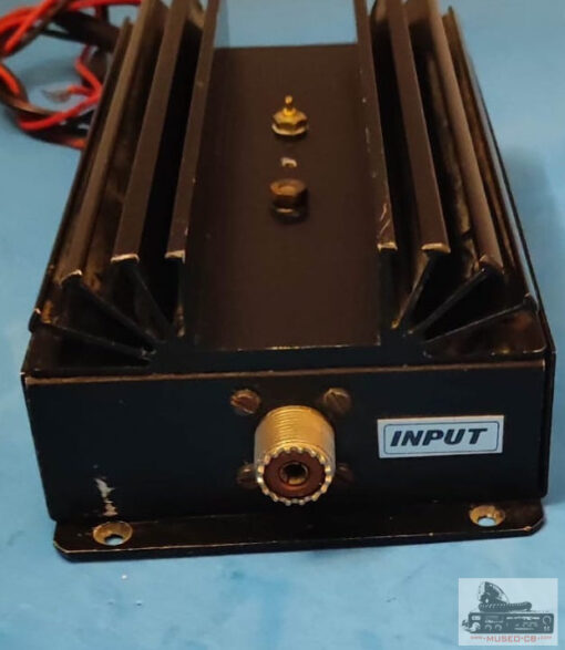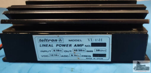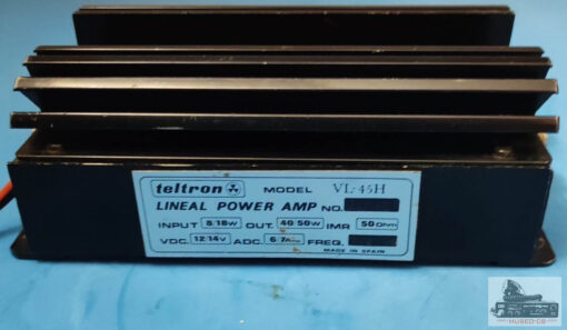 Amplificador de VHF fabricado en Zaragoza. Entrada de 8 a 18 watios y salida máxima de 50 watios. El consumo es de 7 amperios.