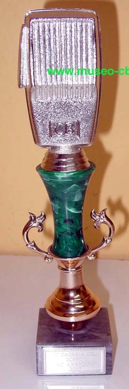 Trofeo del Radio Club Axarquía (Málaga-España) en forma de micro con las siglas CB. Donada a Museo CB por el presidente del Radio Club, Paco, en el transcurso de la III Cacería del Zorro, celebrada en Vélez-Málaga el 2 de junio de 2007, a la que asistieron 3 vehículos de Museo CB.