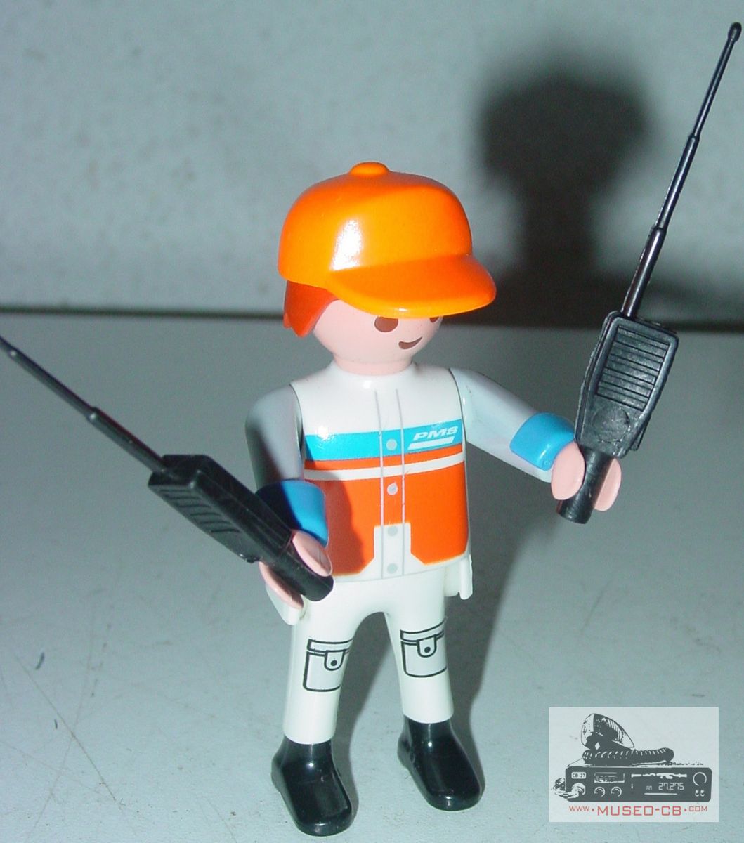 Playmobil con dos walkies en sus manos. Por longitud de la antena, podrían ser de CB (hi)